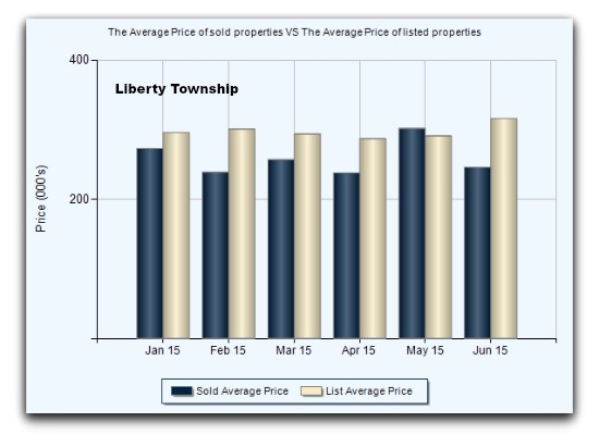 List versus sale prices for Liberty Township single family home sales for the first 5.5 months of 2015: