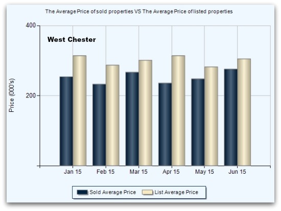 West Chester single family homes sales versus list prices: