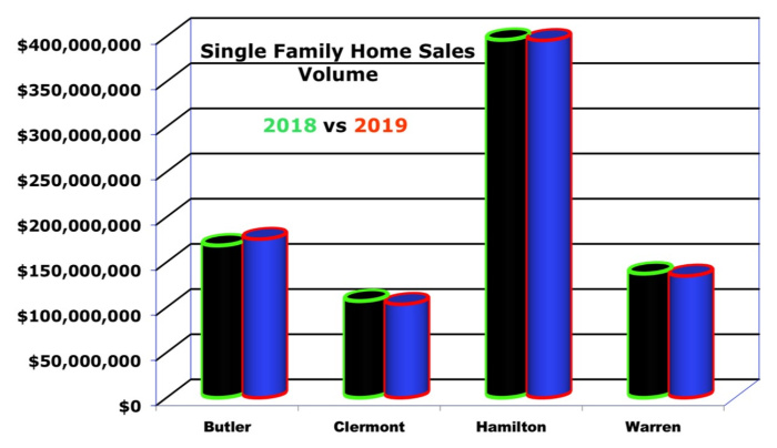 Single-family home sales volume for the 4 counties. Data pulled from the CincyMLS.