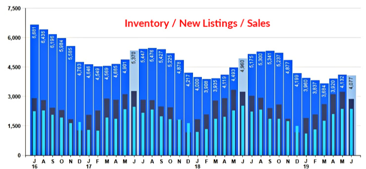 The number on new listings continues to lag behind. New listings were down -11.3% from last month and down -11.2% from June 2018.