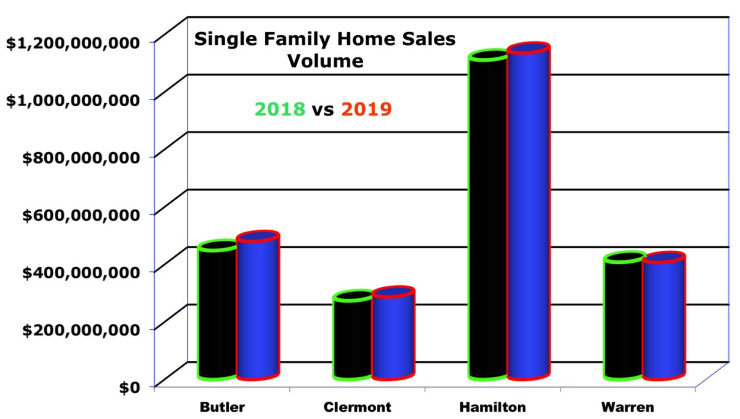 Single-family home sales volume for the 4 counties. Data pulled from the CincyMLS.