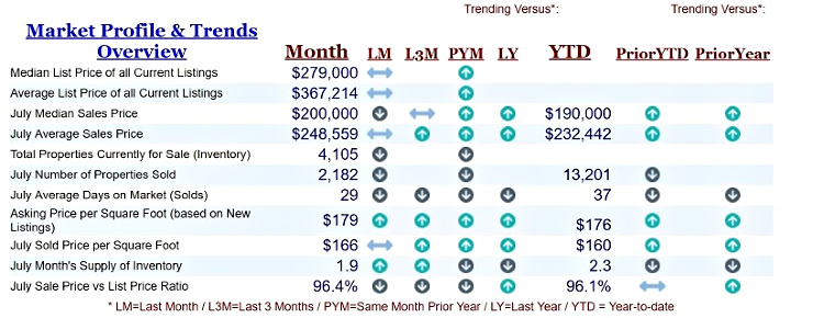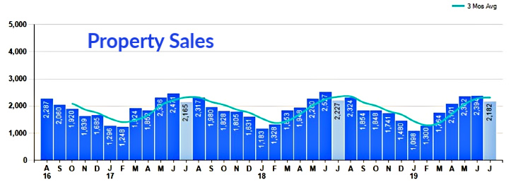 July sales were 2,182 down -2.0% from July 2018. Year-to-Date sales for June of 13,2011 are -1.1% behind the same timeframe in 2018. This June con