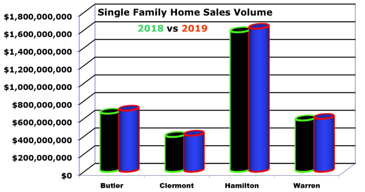August’s numbers reflect slight gains in all the counties. Single-family home sales volume for the 4 counties. Data pulled from the CincyMLS.