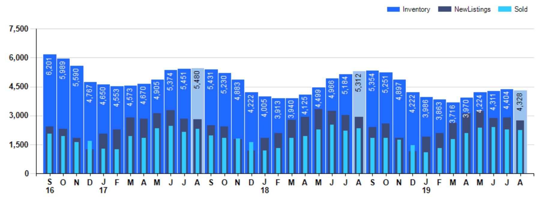 The number of new listings decreased by – 5.5% from last month. And down -6.1% compared to August 2018.
