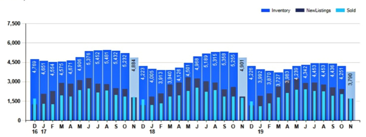 The number of new listings decreased by – 30.0% from last month. And down –8.6% compared to November 2018.