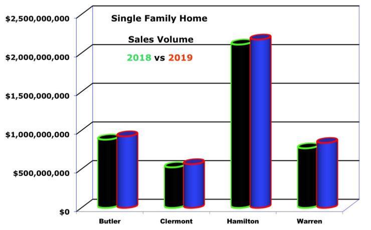 November’s numbers show gains in all the counties. Single-family home sales volume for the 4 counties. Data pulled from the CincyMLS.