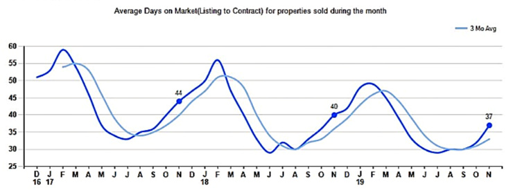 The average Days on Market (DOM)for November was 37 up +15.6% from last month and down -7.5% from November 2018.