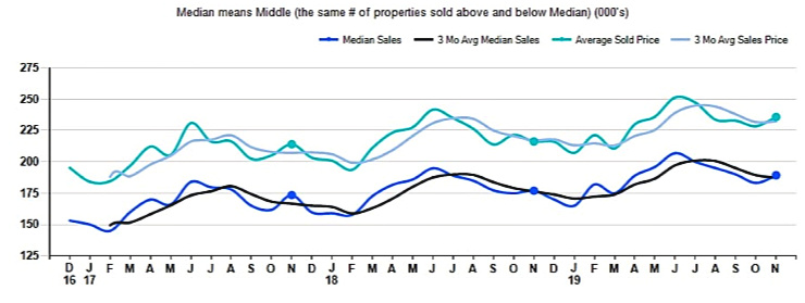The median sale price rose +6.9% comparing November 2018 to November 2019 and up + 3.3% from last month.