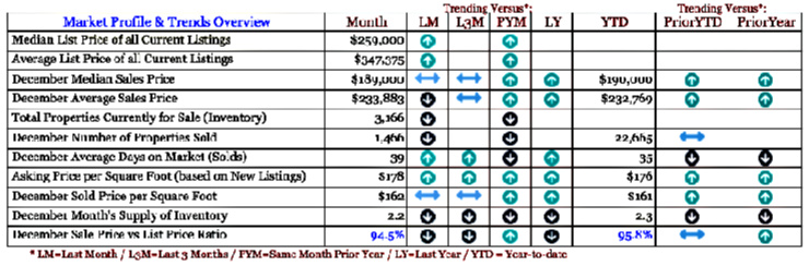 December Property Sales were 11,466 down -1.0% from December 2o18. And – 12.7% lower than last month. Year-to-Date sales are running + 0.3% ahead of last year. (The final year-end numbers should be more positive than this early view)