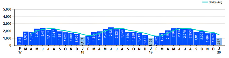 Official numbers aren’t released until the 3rd week of each month. However, this first look shows a little slump in prices even though a record number of homes were listed compared to December 2019- up +56.0%.