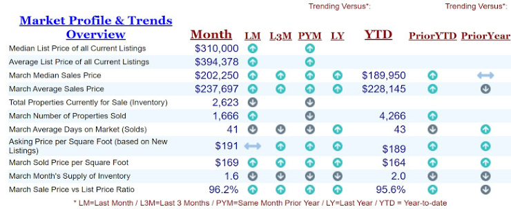 March single-family home sales were 1,666, down -5.9% from 1,771 in March of 2019 and +19.1% higher than the 1,399 sales last month. However, March 2020 sales were at their lowest level compared to March of 2019 and 2018.