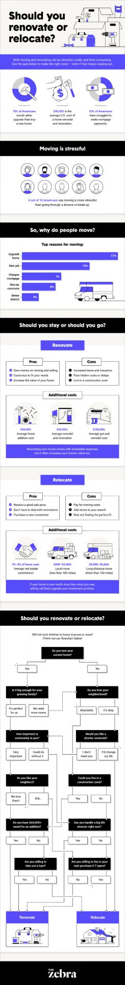Still, deciding whether you should renovate your home or move? Check out this flowchart from The Zebra to help you choose!