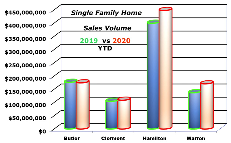 February numbers show gains in all the counties but Butler. Single-family home sales volume for the 4 counties. Data pulled from the CincyMLS.