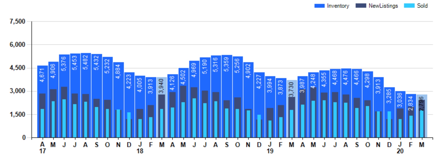 The number of new listings increased by +21.3% from last month. And down -6.7% compared to March 2019.