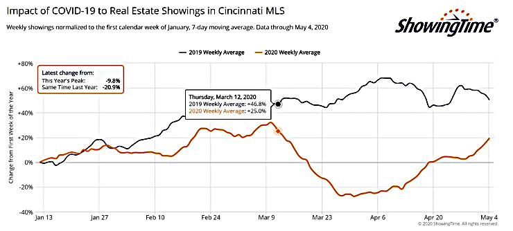 The chart shows how the number of showings requested for home buyers. Ohio’s official “shelter-in-place” order went into effect on March 23rd. But if you remember the week leading up to the official order prompted many homeowners and businesses began scrambling to work around the virus.
