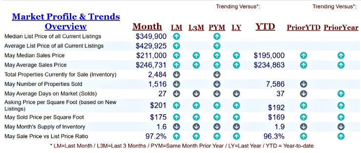 May single-family home sales were 1,516, down -30.0% from 2,368 in May of 2019 and – 10.2% lower than . Again, May 2020 sales were at their lowest level compared to May of 2019 and 2018.