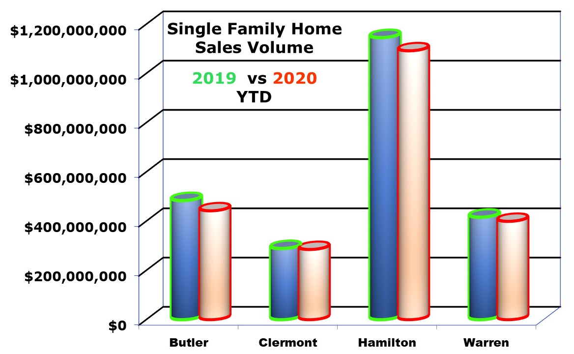 Home prices up and sales volume down on single-family home sales in the 4 counties. Data pulled from the CincyMLS.