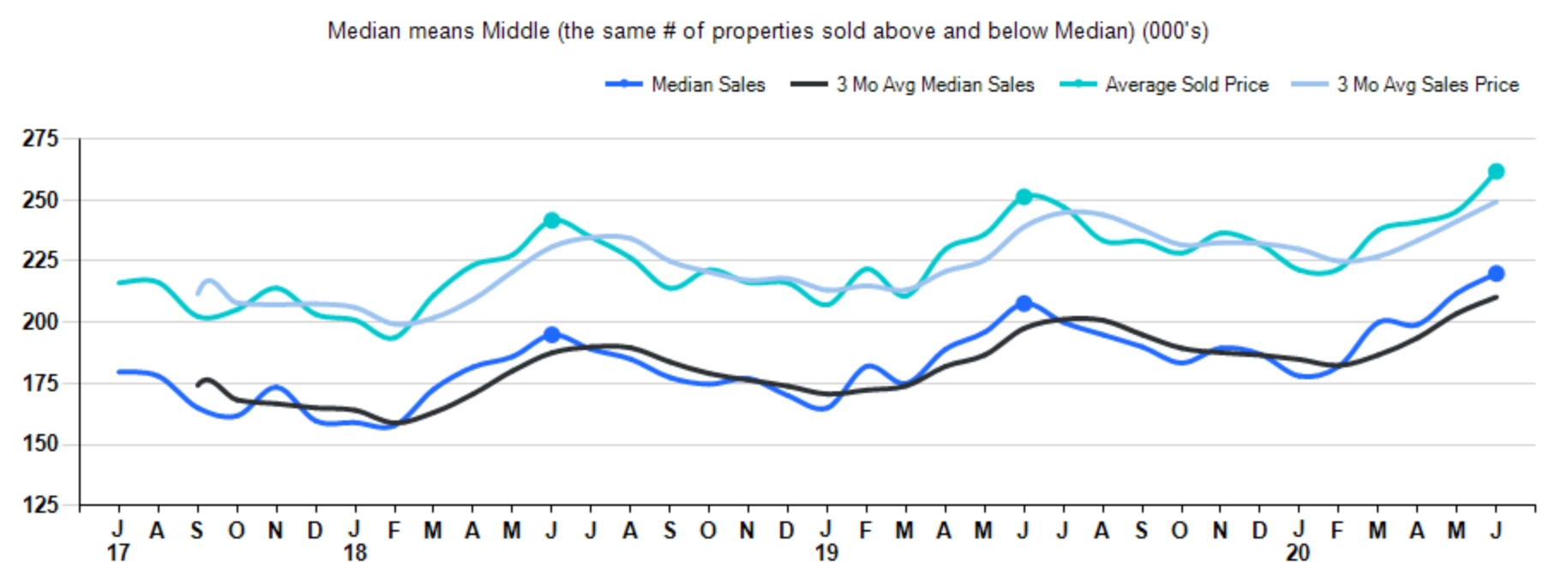 The median sale price rose +5.9% compared to June 2019 and up +3.8% from last month. The average sale price was up +4.2% from June 2019 and up +6.6% from last month.
