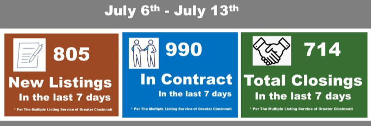 Closings from May and early June sales. As the number of listings goes up so does the number of showings and contracts. However, Cincinnati is still low on listings and there’s a lot of buyer competition.