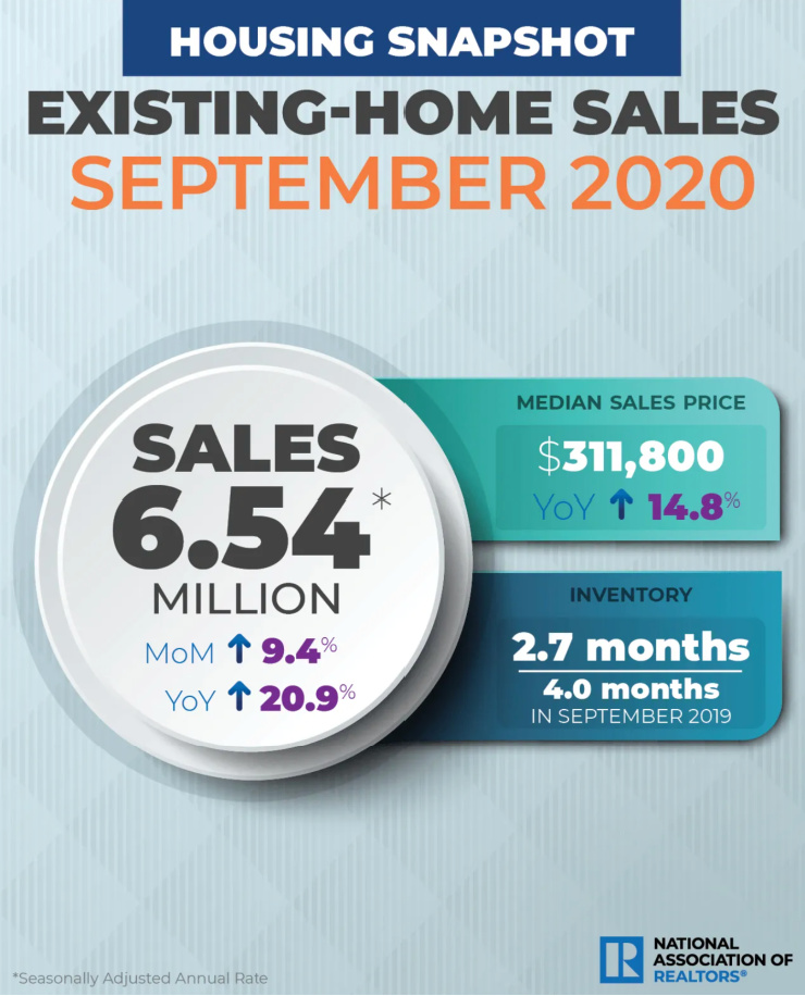 According to the National Association of Realtors® the numbers through September. (Always a month behind)