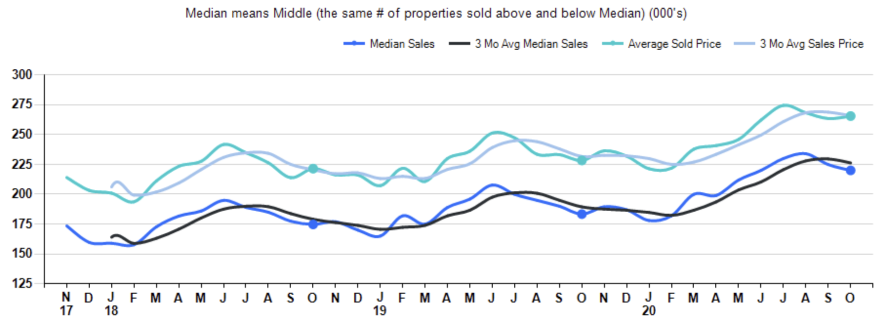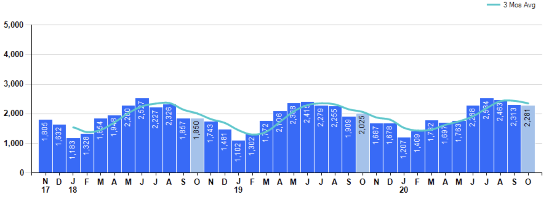 The median sale price rose +20.0% compared to October 2019 and down -2.2% from last month. The average sale price was up +16.3% from October 2019 and up +0.8% from last month.