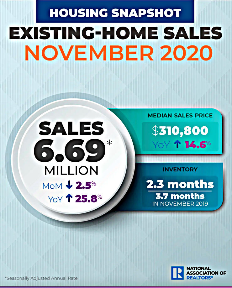 According to the National Association of Realtors® the numbers through November. (Always a month behind)