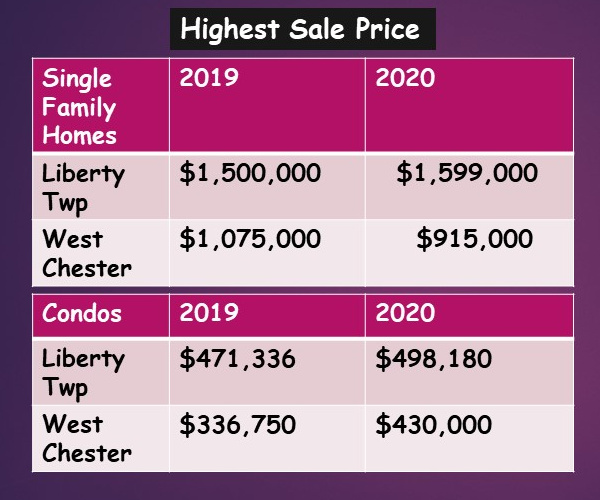 The latest data from the Multiple Listing Service of Greater Cincinnati is for homes and condos listed and sold through the CincyMLS. The information below compares 2019 versus 2020.