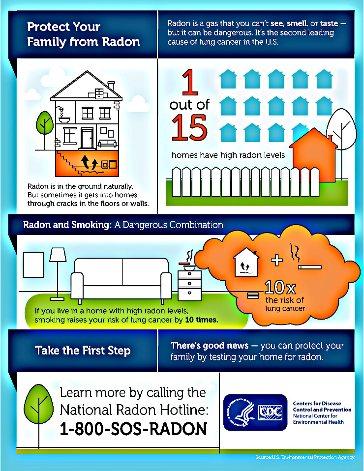 Radon, a naturally-occurring radioactive gas that causes cancer and if not detected can build up to unsafe levels in your home. Continuing COVID19 restrictions, cold weather, closed windows and stuck inside make January a great time to make sure your home is free of radon.