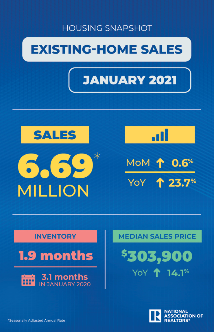 According to the National Association of Realtors® the numbers through January. (Always a month behind)