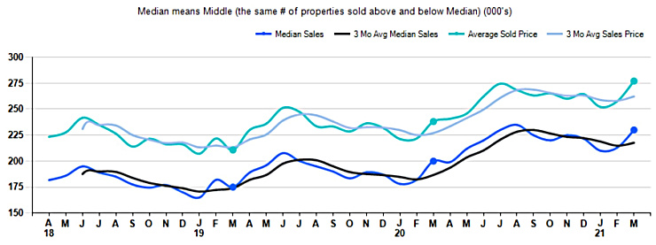The Median Sales Price in March was $230,000, up 15.0% from $200,000 in March of 2020 and up 8.0% from $213,000 last month. The Average Sales Price in March was $277,135, up 16.4% from $238,116 in March of 2020 and up 7.6% from $257,654 last month. March 2021 ASP was at highest level compared to March of 2020 and 2019..