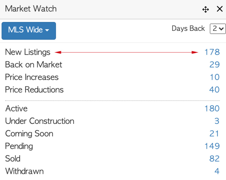 Homes making their first appearance late in the week seems to be here to stay for a while. The number of homes hitting the market at the same time sends buyers into a frenzy. Offers over asking are the new norm. The charts below reflect the number of new listings over 2 days -June 2nd at 1pm to June 4 at 1pm. The weekend rush has begun!