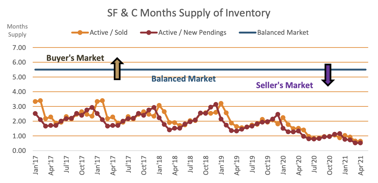 The National Association of Realtors (NAR) and state and local real estate associations also publish absorption rates for public consumption. By NAR standards our market is in total love with sellers at this time.