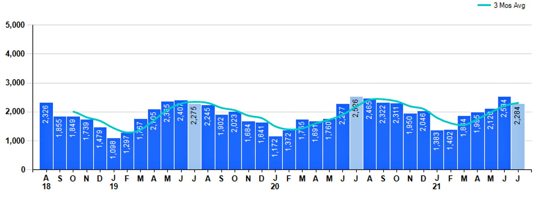 Source: Photo by Alexandr Podvalny from PexelsJuly Property sales were 2,284, down -9.6% from 2,526 in July of 2020 and -9.9% lower than the 2,534 sales last month. July 2021 sales were at a mid-level compared to July of 2020 and 2019. July YTD sales of 13,582 are running 8.2% ahead of last year’s year-to-date sales of 12,553.