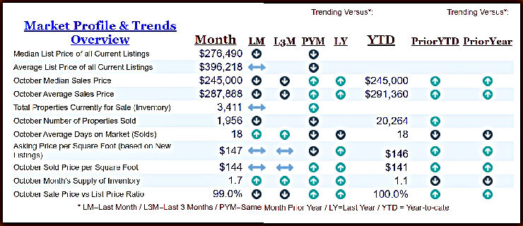 The number of properties sold in October 2021 was 2,197, down -11.87% from 2,493 from the previous month and -15.14% lower than 2,589 from October 2020. The October 2021 sales were the lowest level compared to October 2020 and 2019. The absorption rate is the avg number of sales per month divided by the total number of available properties.