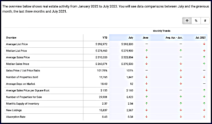 The July 2022 average sale price was at its highest level compared to July 2021 and 2020.