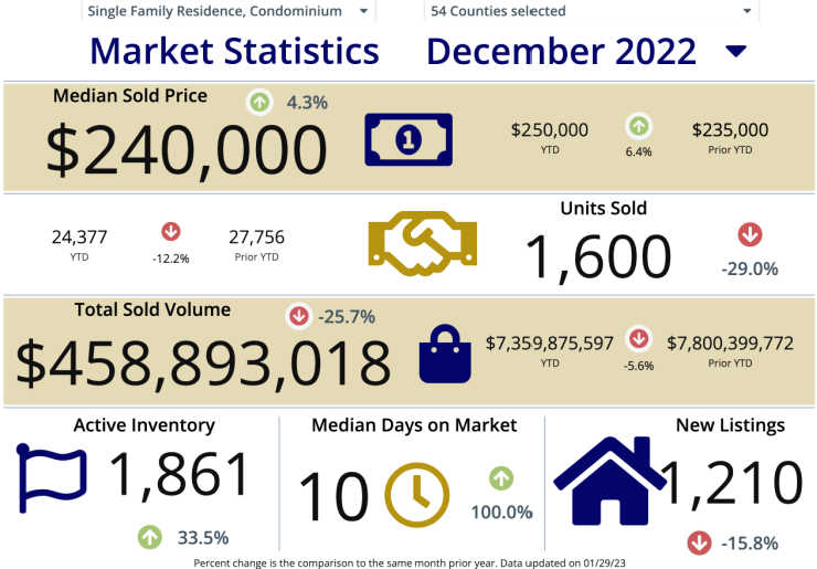 The chart below shows real estate activity for January 2023 compared to the same timeframe in 2022.