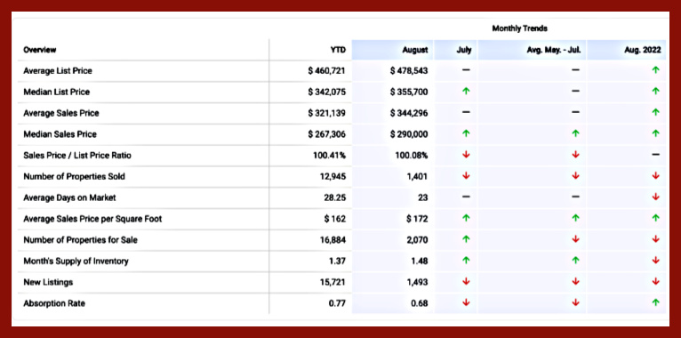 The average sales price in August 2023 was $346,821, up 1.40% from $342,030 from the previous month and 11.02% higher than $312,403 from August 2022.
