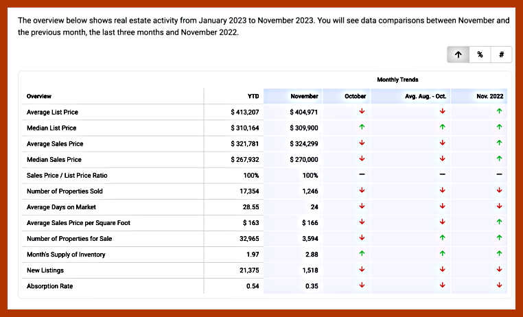 The November 2023 median sales price was at its highest level compared to November 2022 and 2021.