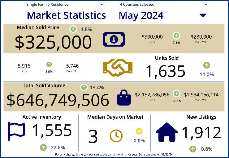 The good news is that inflation is also local and while the median average sale price in the U.S.A. is $419,000 our 4-county area is much more affordable.