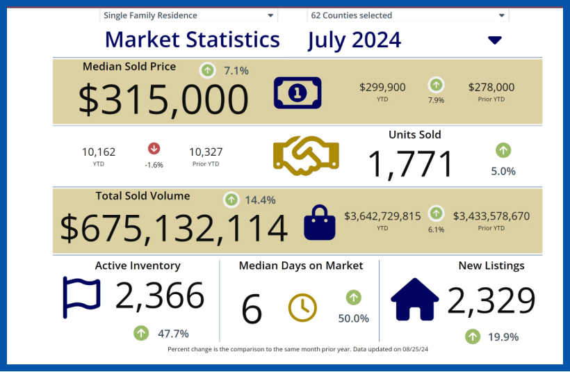 The median sales price is up 4.2% year-over-year, and inventory was up 0.7 months from July 2023.