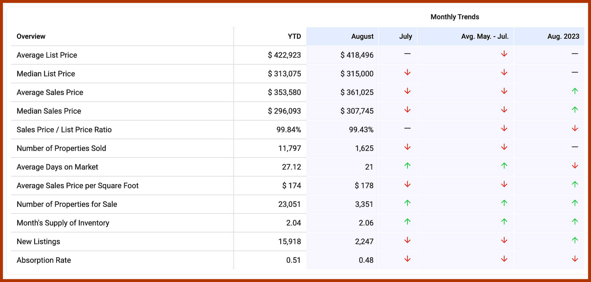 MLS data of single-family home sales by county reflects slightly lower sale prices for August:
