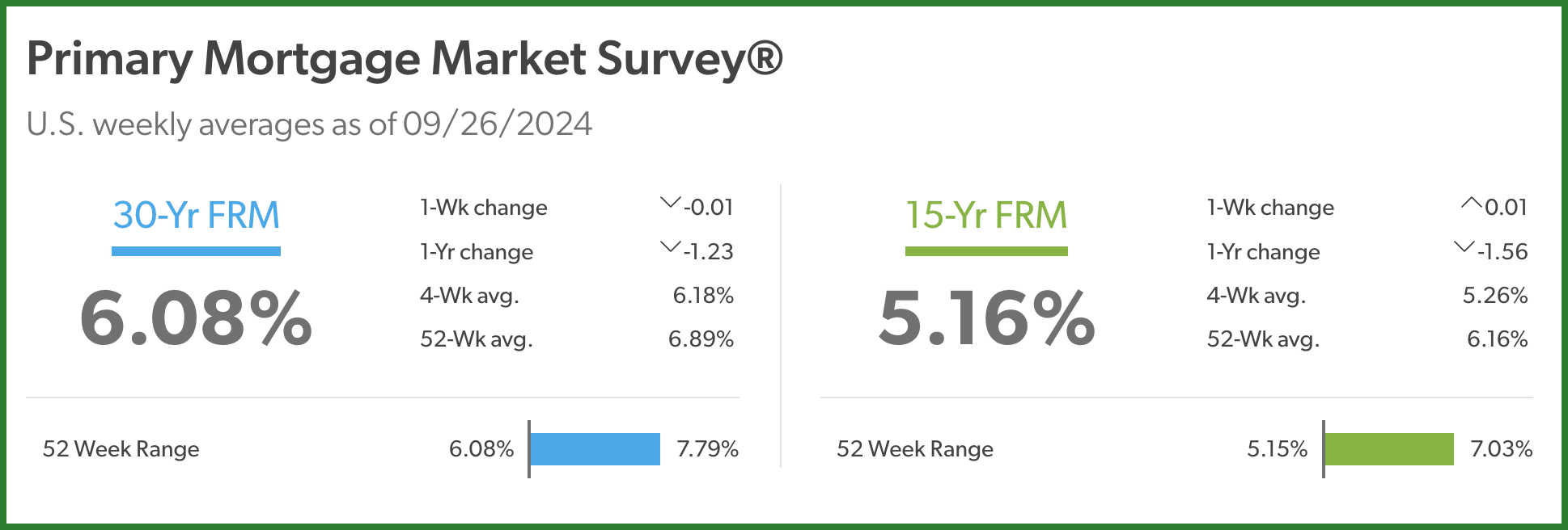 Below are numbers from Freddie Mac released on 9.26/2024: