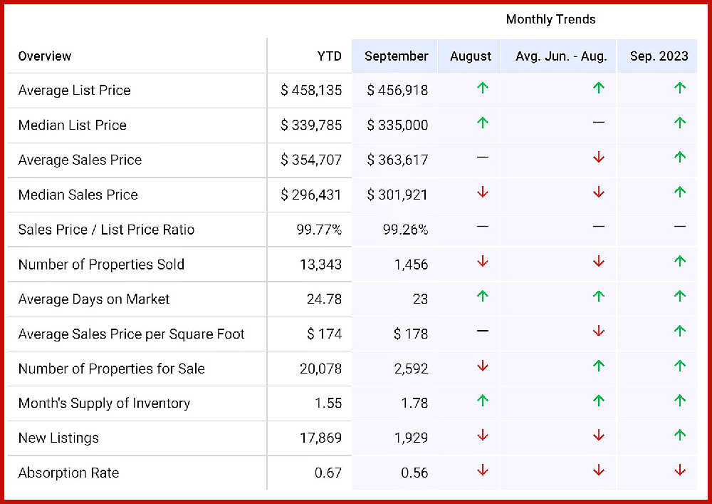 The September 2024 median sales price was at its highest level compared to September 2023 and 2022. The average sales price in September 2024 was $354,500, up 1.66% from $348,698 from the previous month and 10.61% higher than $320,498 from September 2023.