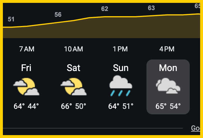 | 2023: May 29 – Average high: 80°F, Chance of rain: 15% | |||