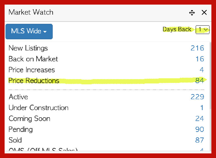 Price reductions during the last 24 hours in the CincyMLS reflect the overpricing problem: