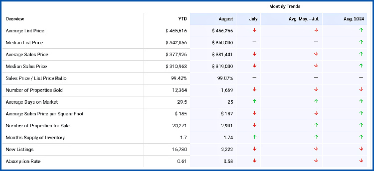 The overview below shows real estate activity from January 2025 to August 2025.