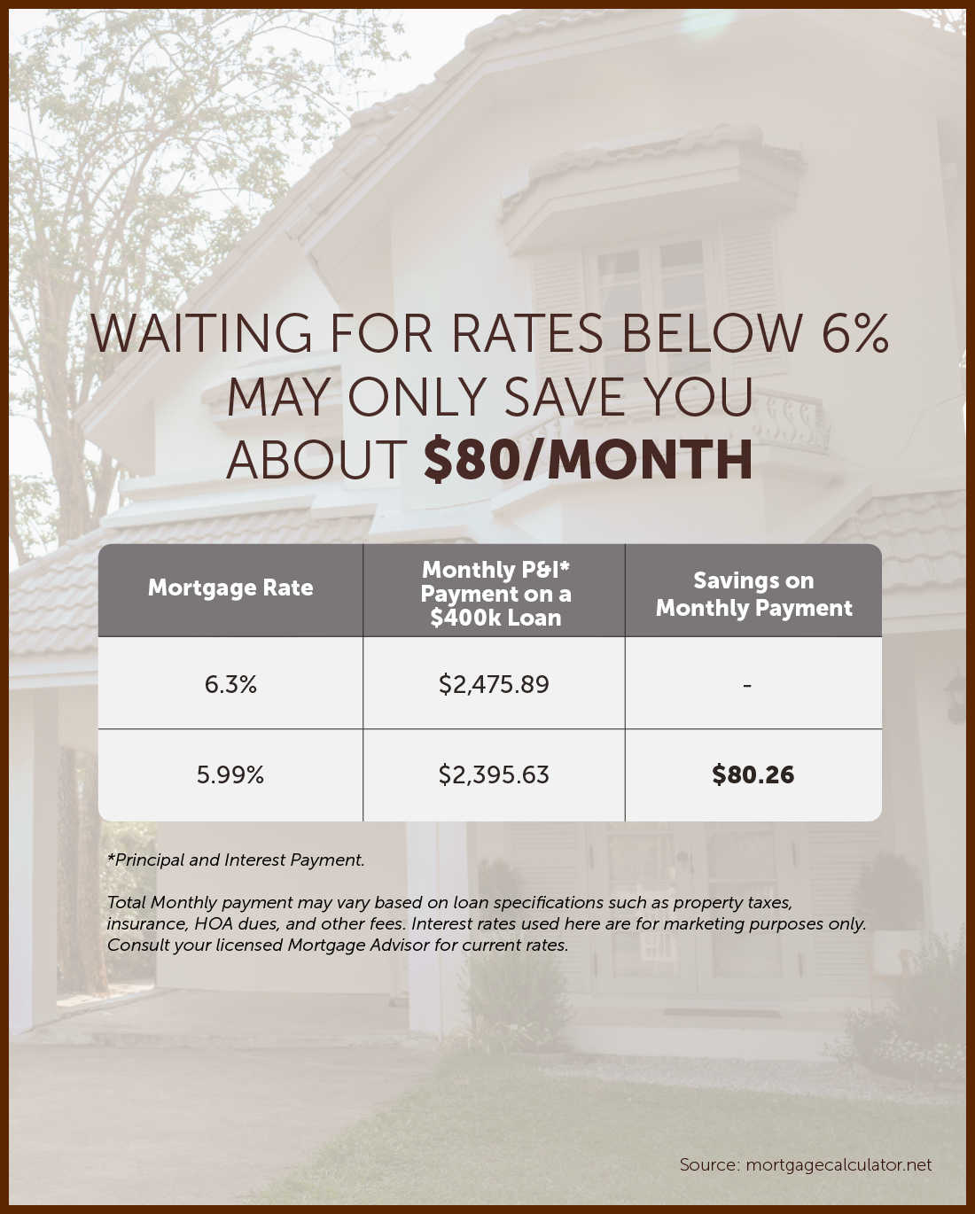 Rates have already come down enough to save buyers almost $400 a month compared to what they would have spent on a typical home earlier this spring. So, waiting for that last tiny dip could mean missing your shot.