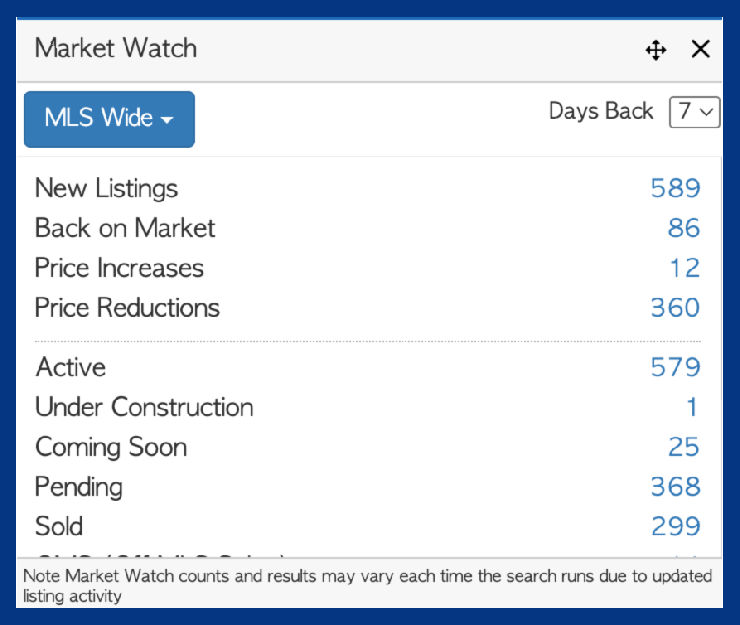 Notice the number of price reductions during the last week. New listings are slightly ahead of listings with price drops.