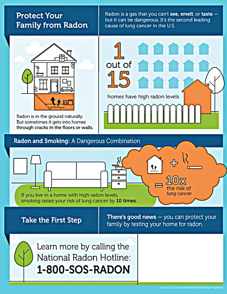 Radon, a naturally-occurring radioactive gas that causes cancer and if not detected can build up to unsafe levels in your home. Snowbound and stuck inside makes January a great time to ensure your home is radon-free. And that’s why EPA starts every new year pushing everybody to test for radon.